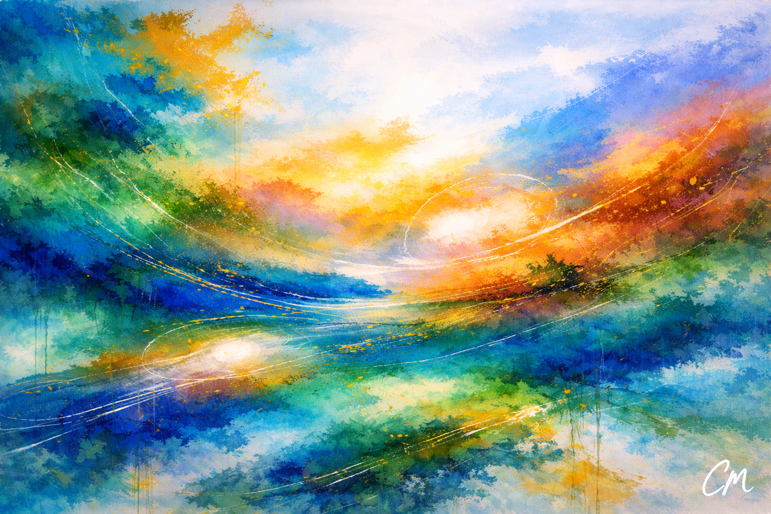“Mindful” – is a digital abstract art painting. This painting was created to focus one’s awareness on the present moment. When viewing the painting it is hoped that it is quite therapeutic.