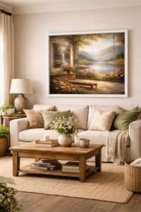 Perfect for living rooms, hallways, bedrooms, or calm interior spaces, this vibrant artwork brings colour, atmosphere, and a connection to nature into the home.