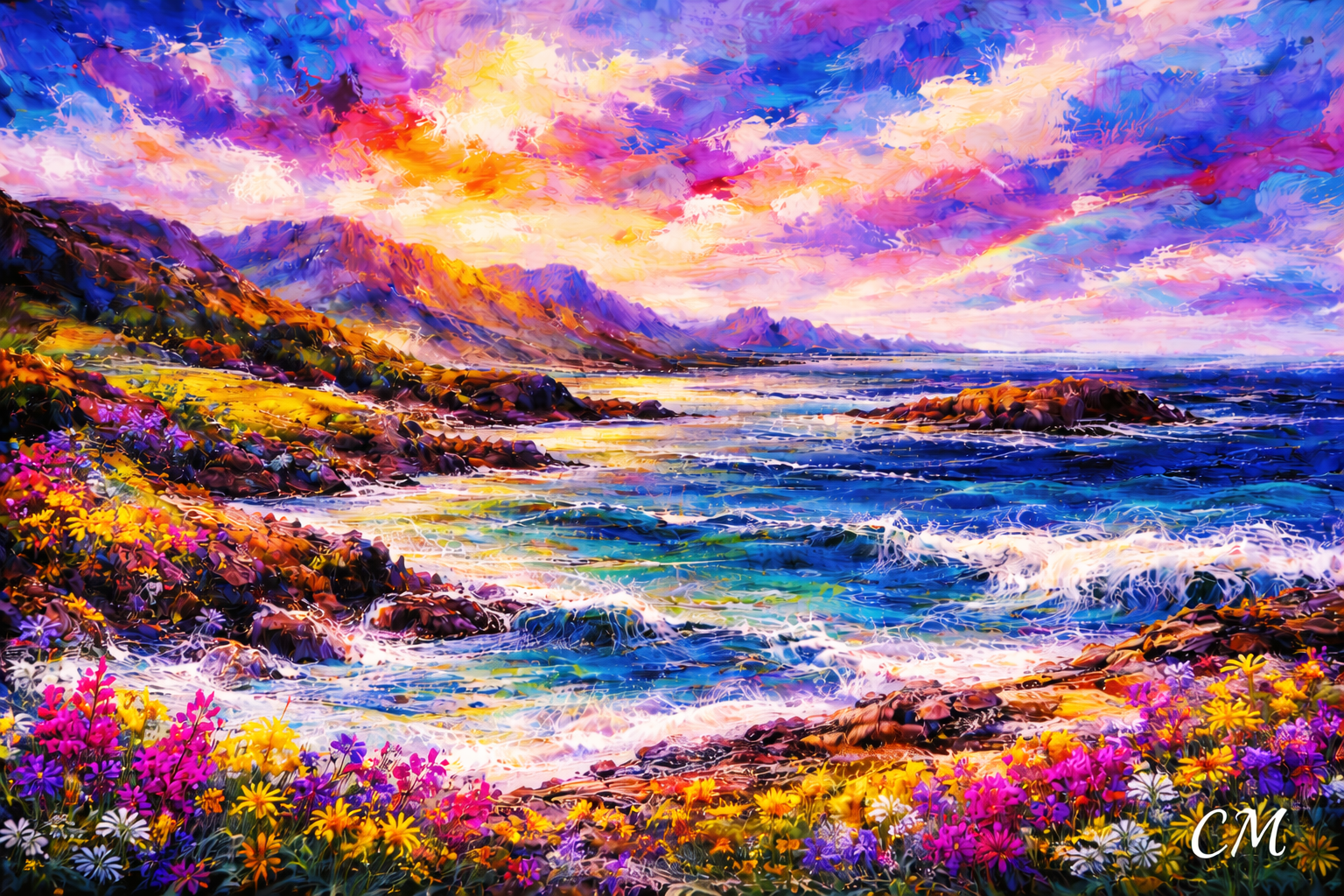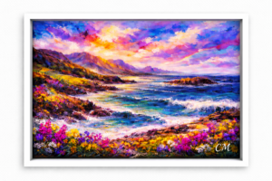 “Wild and Rocky” – is an abstract realism painting. This painting conveys the wild and rocky nature of the Highlands. The fresh air carried on the breeze and the sound of waves crashing on the rocks! It is a lovely place to spend some time.
