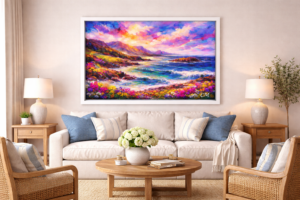 All our Canvas Prints are printed onto 280gsm canvas material and professionally hand stretched over solid pine stretcher frames. This gives a wonderful finish to the print of the original painting.